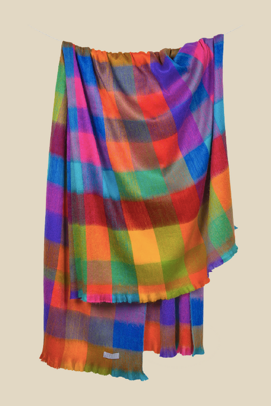 Fringed Check Alpaca Blanket