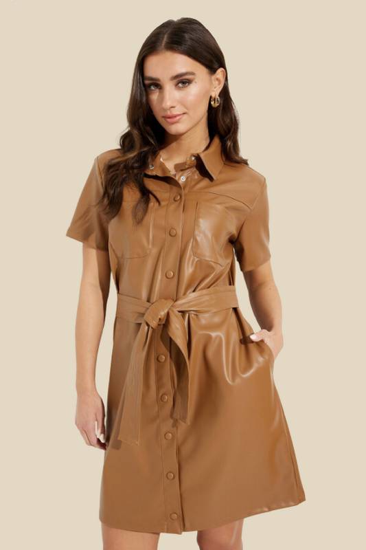 Faux Leather Shirt Dress